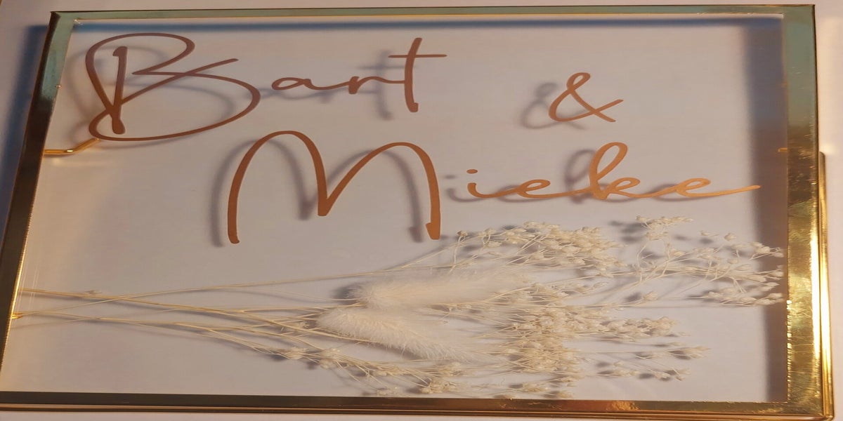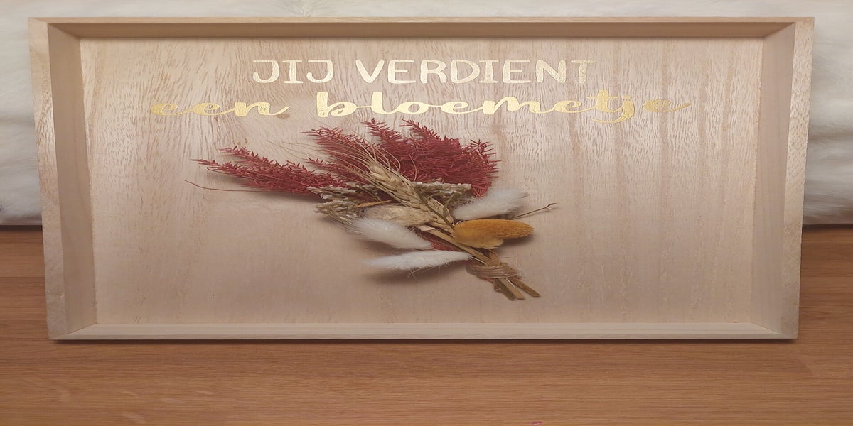 - Houten kader met droogbloemen en tekst, groot: € 22