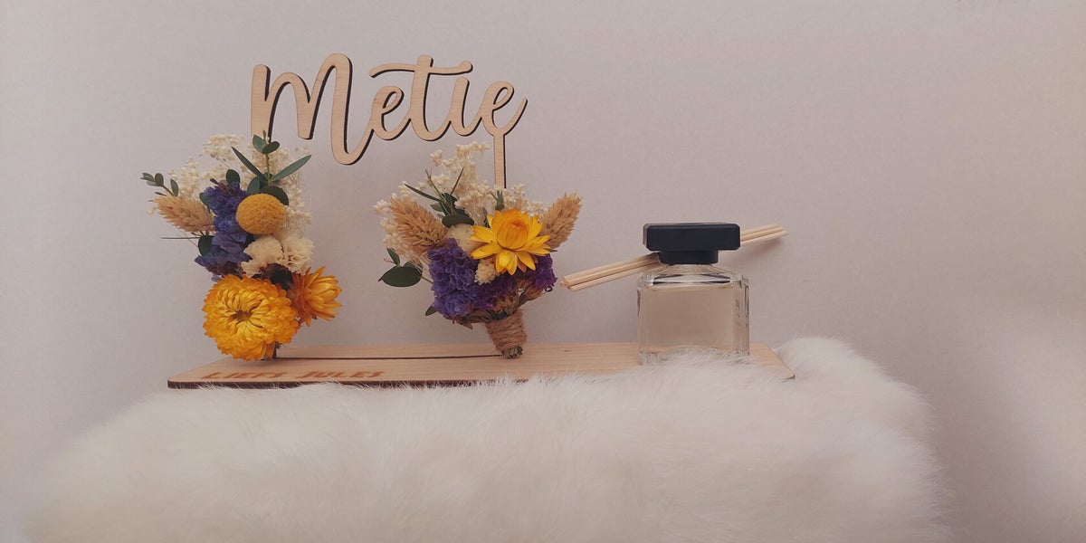 - Houten kader met droogbloemen en tekst, klein: € 18